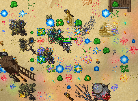 Items such as potions, runes, weapons, and ammunition are dynamically placed in buildings, with their quantity adjusted to the number of players. Additionally, bonus chests with valuable items appear in strategic locations on the map.